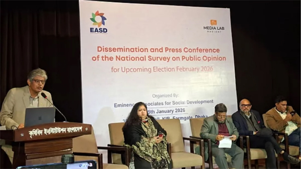 বেসরকারি গবেষণা সংস্থা এমিনেন্স অ্যাসোসিয়েটস ফর সোশ্যাল ডেভেলপমেন্ট (ইএএসডি) এই জরিপ পরিচালনা করে। সোমবার বিকেলে ফার্মগেটের কেআইবি মিলনায়তনে জরিপের ফল প্রকাশ করেন সংস্থাটির প্রধান নির্বাহী কর্মকর্তা শামীম হায়দার তালুকদার।