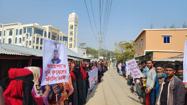 সোমবার দুপুরে রাঙ্গাবালী সিনিয়র জুডিশিয়াল ম্যাজিস্ট্রেট আদালতের সামনে আয়োজিত মানববন্ধনে দুই শতাধিক মানুষ অংশ নেন। কর্মসূচিতে অংশগ্রহণকারীরা আয়েশার বাবা বাবুল প্যাদার মুক্তি ও খুনি রুবেল প্যাদার দৃষ্টান্তমূলক শাস্তির দাবিতে বিভিন্ন স্লোগান দেন।