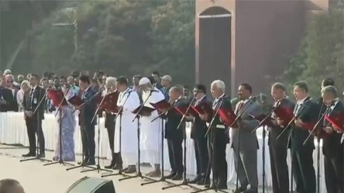 ত্রয়োদশ জাতীয় সংসদ নির্বাচনে নিরঙ্কুশ সংখ্যাগরিষ্ঠতা অর্জনের পর সরকার গঠন প্রক্রিয়ার অংশ হিসেবে বাংলাদেশের ১১তম প্রধানমন্ত্রী হিসেবে শপথ নিয়েছেন বিএনপির…