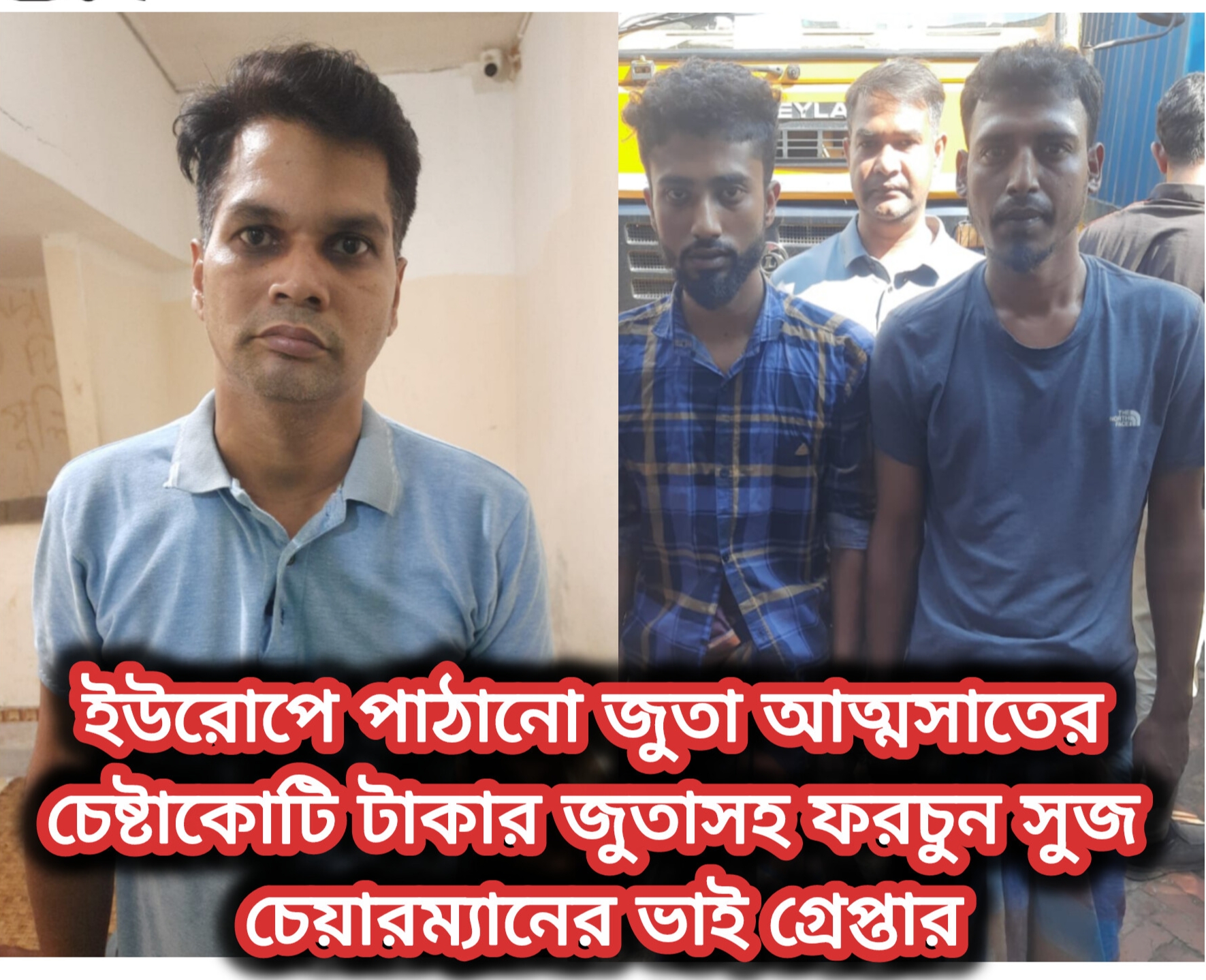 ইউরোপে রপ্তানির জন্য পাঠানো বরিশালে ফরচুন সুজের কোটি টাকার জুতা আত্মসাতের চেষ্টার অভিযোগে প্রতিষ্ঠান মালিকের ভাইসহ তিনজনকে গ্রেপ্তার করেছে পুলিশ। বৃহস্পতিবার রাতে চট্টগ্রামের সীতাকুণ্ড এবং ঢাকা থেকে তাদের গ্রেপ্তার করা হয়।
